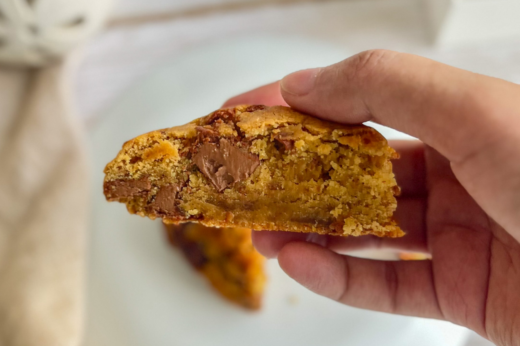 Our signature NYC-style cookie with crisp edges, a gooey centre, and pools of premium dark chocolate chunks. Baked in small batches using real butter, couverture chocolate, and zero preservatives.